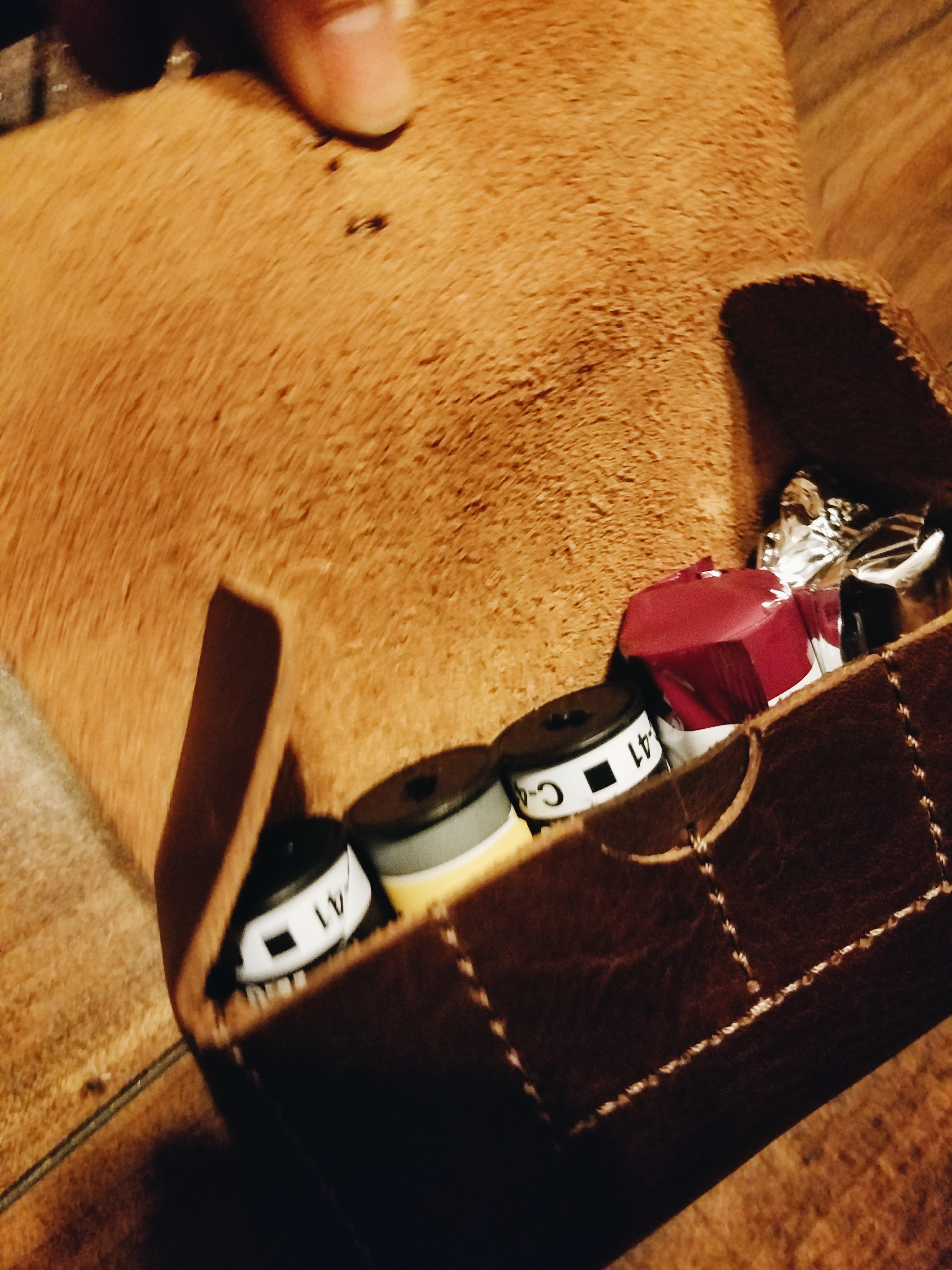Front view of Henri Pouch: Fits 5 rolls of medium-format film, and slot for 2 SD cards in front. 5 rolls of medium format film